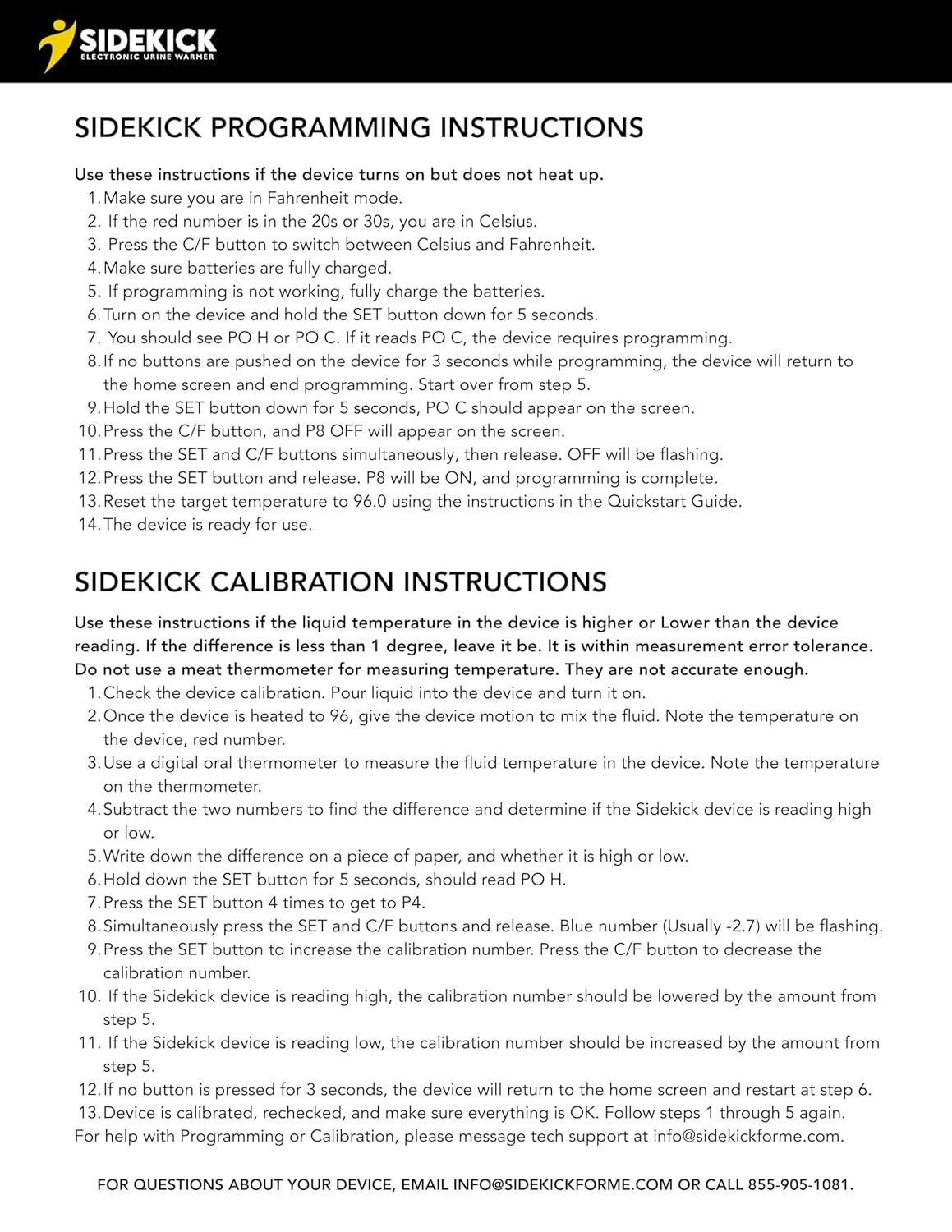 - Sidekick Electronic Urine/Lotion Warmer (2 oz capacity)